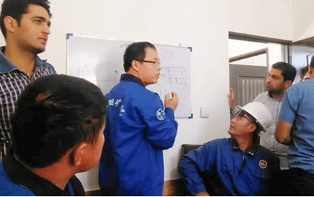 為了讓客戶的選廠盡早投入生產,并擁有穩定的技術團隊, 保障日后礦山的正常運營,金鵬會委派安裝調試團隊中的技術 骨干來負責培訓,這些經驗豐富的 工程師們將對所有選礦設備、選礦工藝在選廠運營中的常見問 題進行培訓,為工人現場演示解決方法。