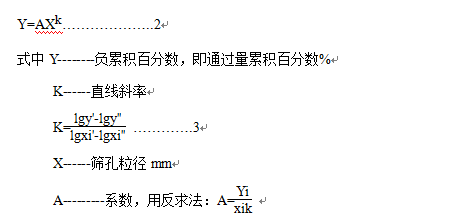 根據入磨物料粒度篩析,利用粒度特性方程式,求出通過量累積百分數80%和95%時物料粒徑大小或任意粒徑大小的累積百分數,供配球時使用。