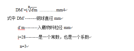 研磨體尺寸的大小和欲磨細物料的粒度間有一定關系。根據粉碎理論,體積假設及假想的“聚積層”的關系,可以理論上演證出來物料粒度與研磨尺寸間的關系(計算公式略)。另外,FC邦德萊專家學者提出計算公式。筆者根據多年實踐使用KA拉朱莫夫公式較為簡便。計算公式如下: