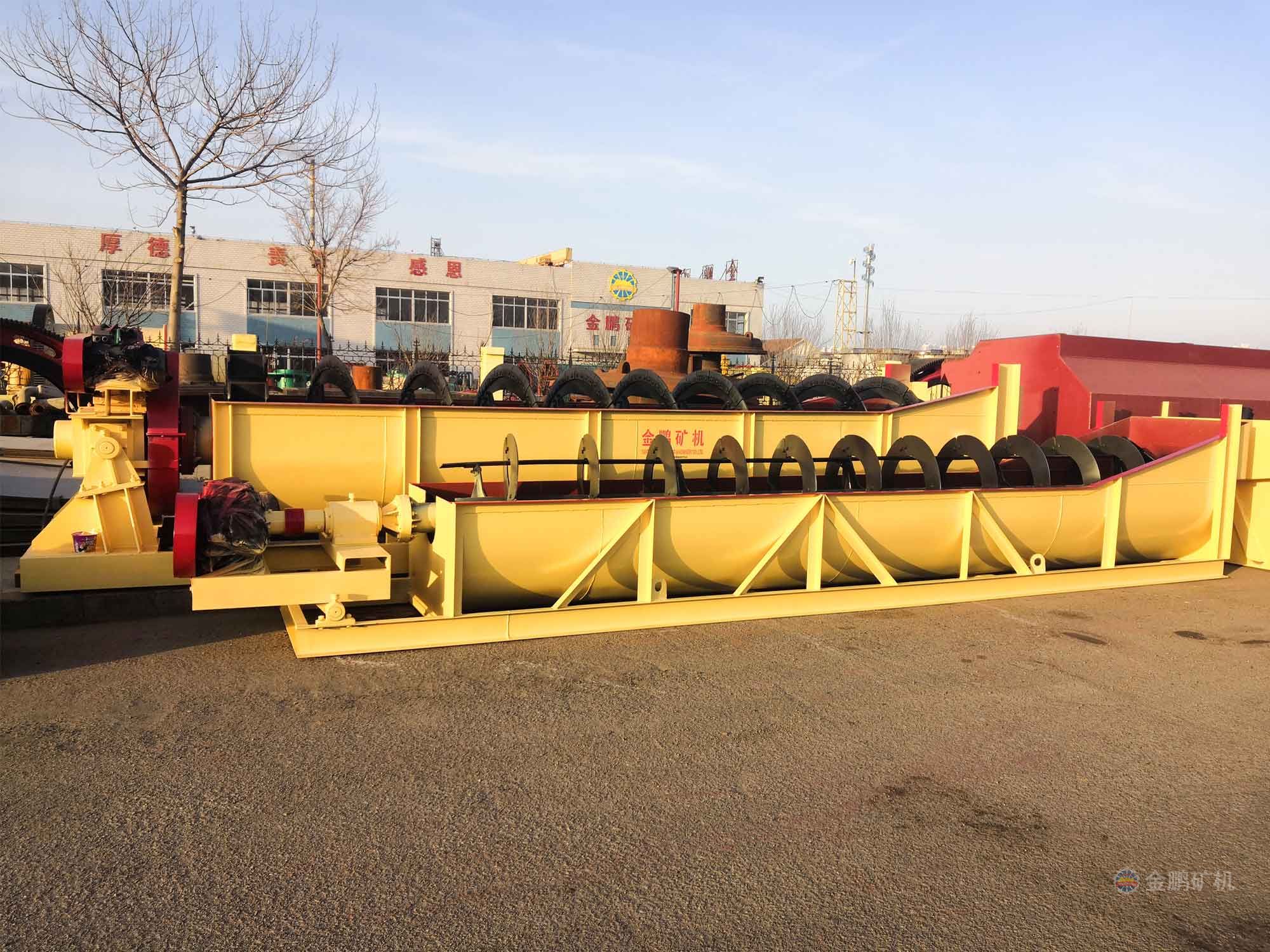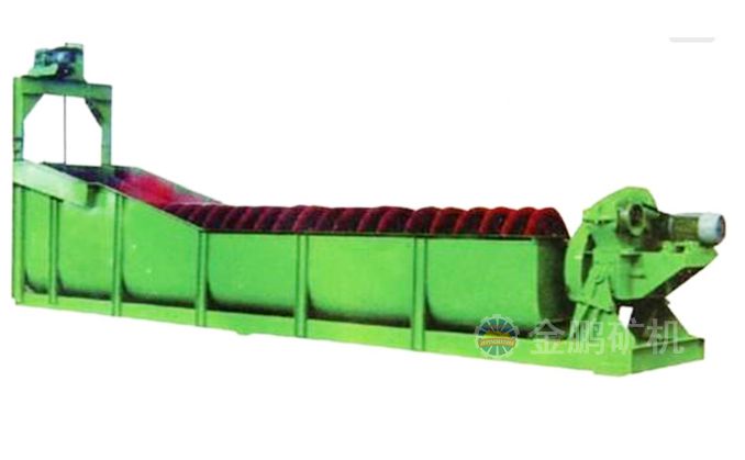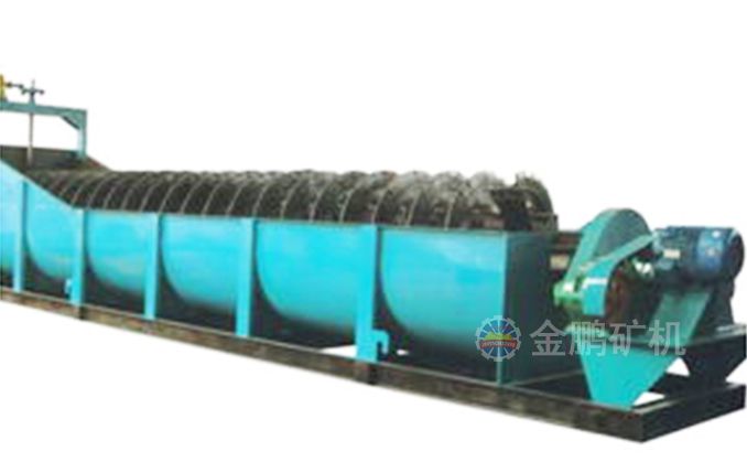 沉沒式螺旋分級機(jī)是借助于固體粒大小不同、比重不同,因而在液體中的沉降速度不同的原理,細(xì)礦粒浮游在水中由溢流堰溢出,粗礦粒沉于槽底,由螺旋推向上部排出,來進(jìn)行機(jī)械分級的一種分級設(shè)備。通過螺旋低速轉(zhuǎn)動,對礦漿起攪拌作用使細(xì)顆粒懸浮到上面,流到溢流堰處溢出,粗顆粒沉到槽底,由螺旋輸送到排料口作為返砂排出。