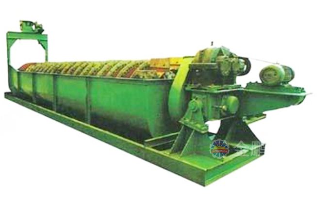 一款溢流端螺旋全部浸沒在液面下的分級設(shè)備。沉沒式螺旋分級機(jī)溢流端的螺旋葉片全部浸入溢流面以下,主要適用于溢流粒度為0.15~0.07mm的礦石分級。