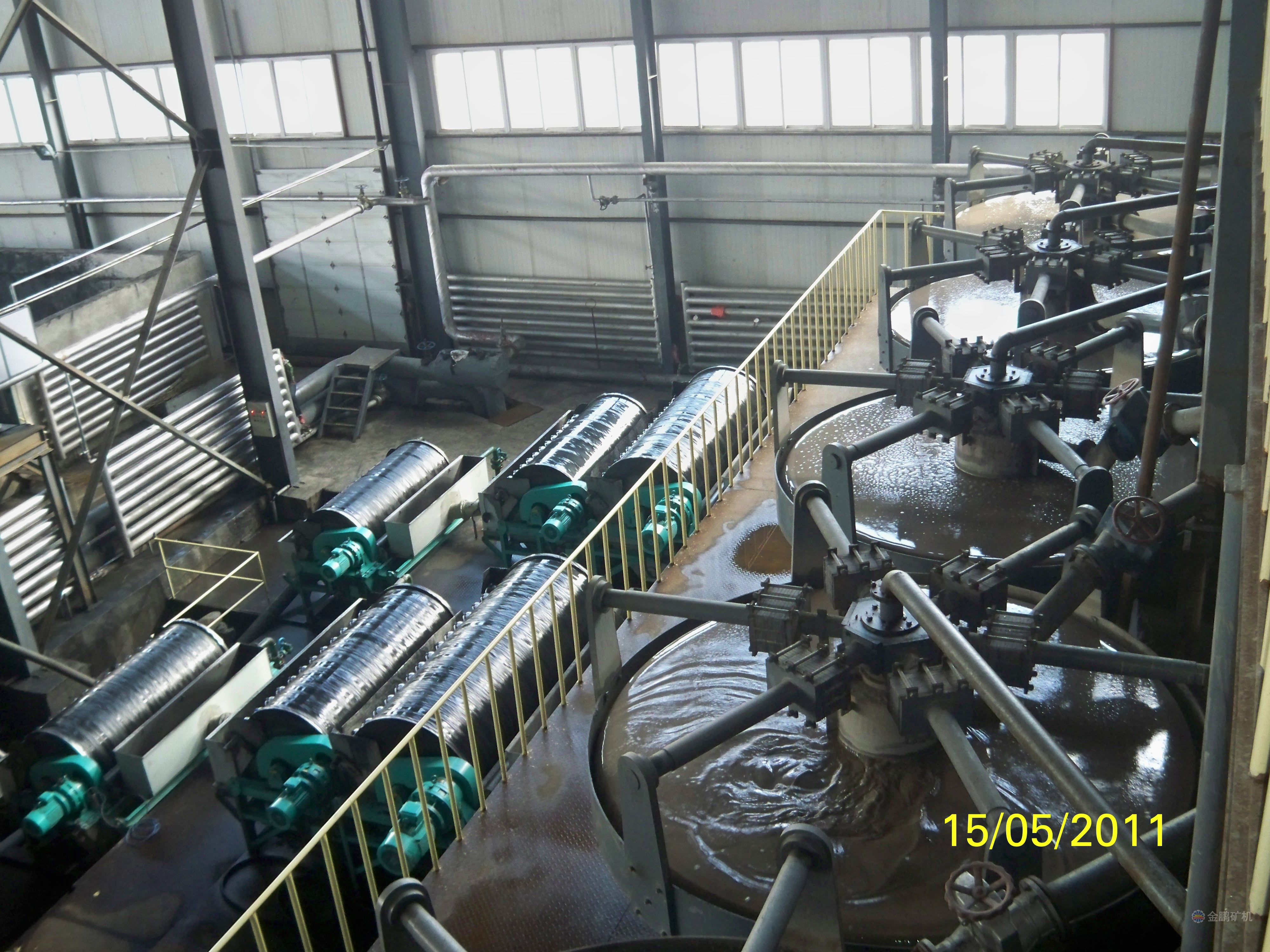 3、強磁選:由于磁選的操作簡單、易于控制、適應性強,可用于各種錳礦石選別,近年來已在錳礦選礦中占主導地位。一般能提高錳品位4-10個百分點。目前,國內錳礦應用最普遍的是中粒強磁選機粗粒和細粒強磁選機也逐漸得到應用。
