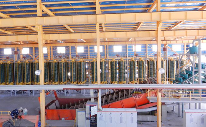 2、預(yù)選:將20~4mm礦石進(jìn)入重介質(zhì)旋流器預(yù)選,再經(jīng)一段棒磨后采用跳汰機(jī)預(yù)選,跳汰尾礦用2mm振篩篩除+2mm作為廢棄尾礦,-2mm進(jìn)入搖床選別。