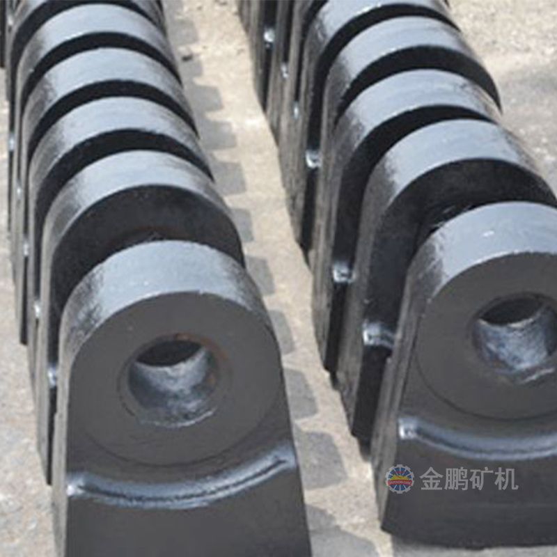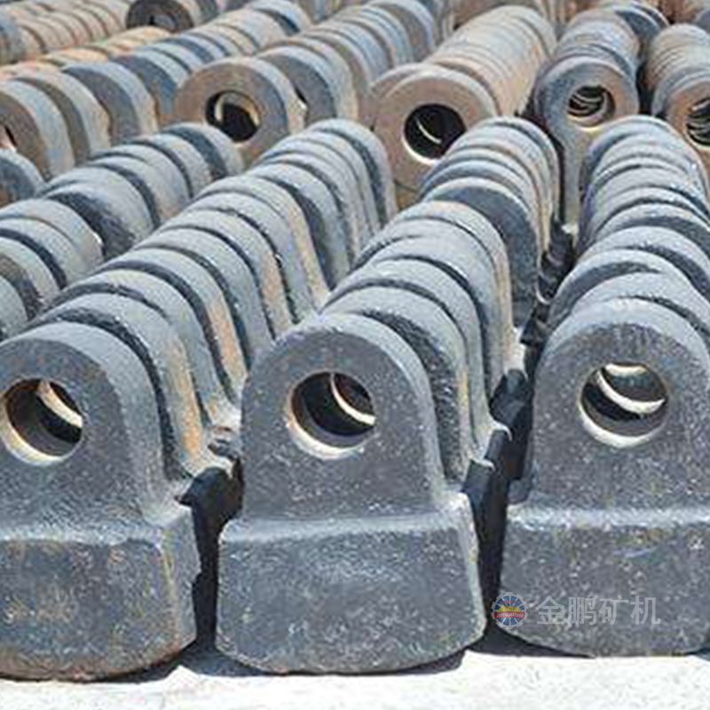 采用高錳鋼、超高錳鋼、合金鋼單一材質或雙金屬復合鑄造,結合先進的生產工藝生產制做高錳鋼錘頭、超高錳鋼錘頭、高鉻錘頭、復合錘頭等,來適應錘式破碎機不同的服役條件。